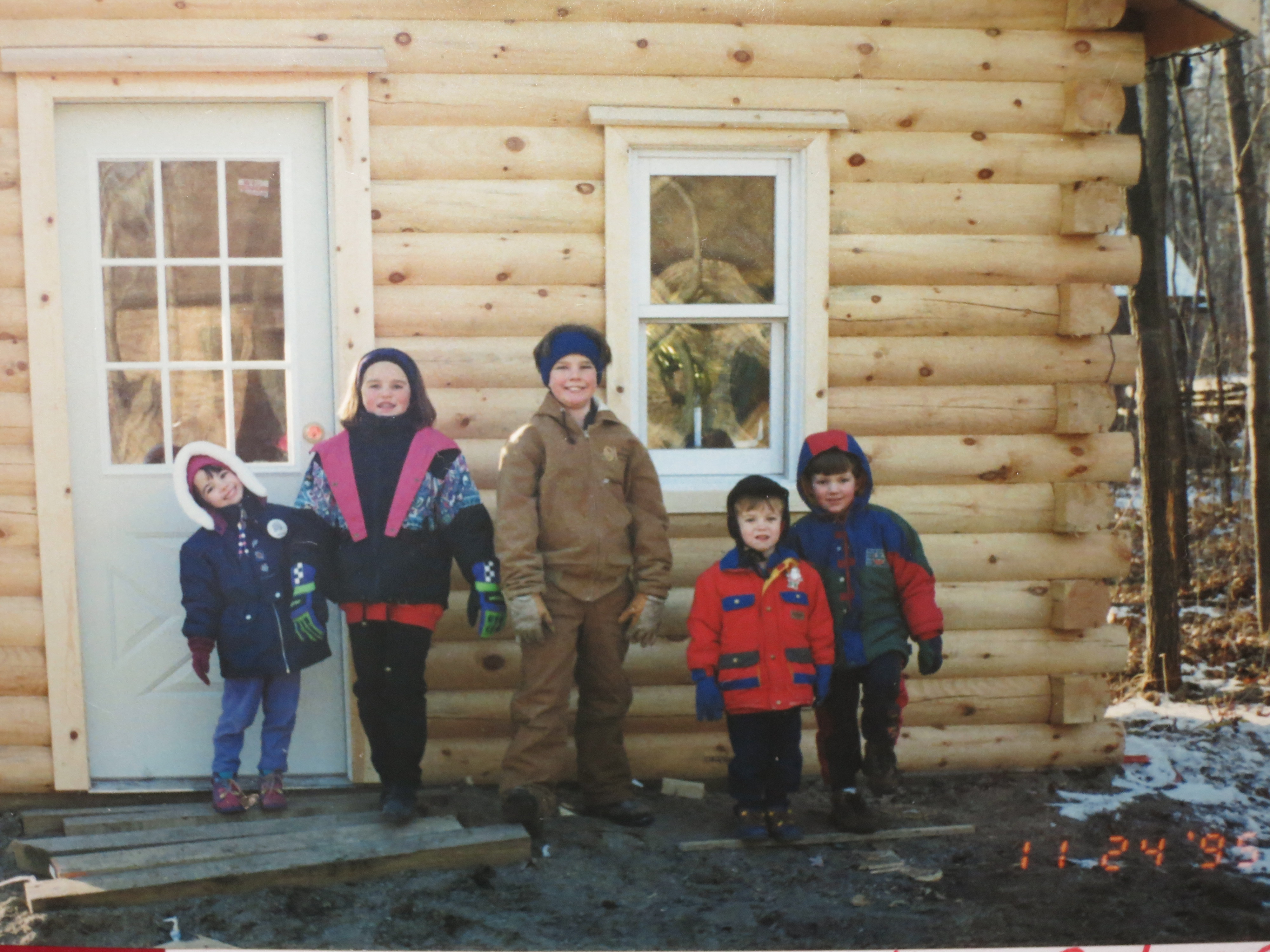 Our first cabin visitors, Jordan, Missy, Blain, Cody and Conner, the cousins – 1995